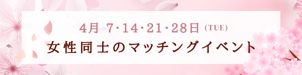 大好評の女性同士個別マッチングイベントを、4月も毎週火曜日に開催いたします♪